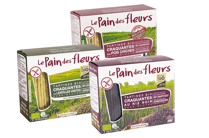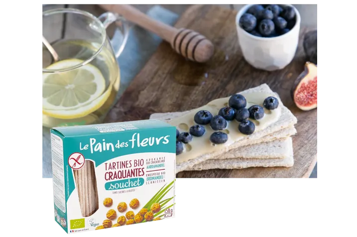 Die Auswahl an neuen Primärmaterialien hat das Konzept des Knusperbrot Pain des Fleurs erweitert: Geschmack und Nährwerteigenschaften der Zutat werden durch Knusprigkeit aufgewertet.